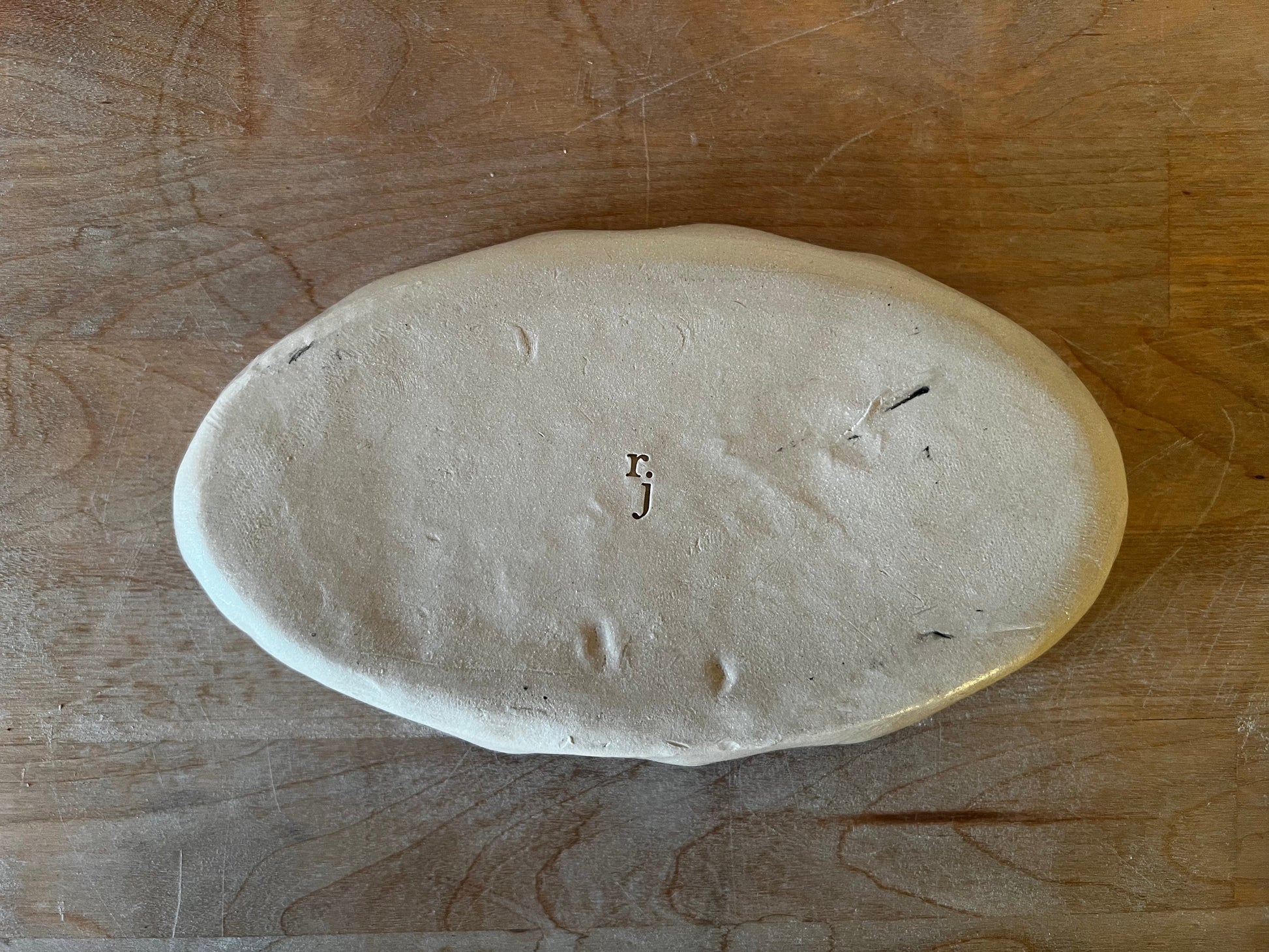 This sgraffito hare plate is made using stoneware clay and and food-safe glazes. The plate is one of a kind and carved by hand using the sgraffito technique to create this jumping hare motif.