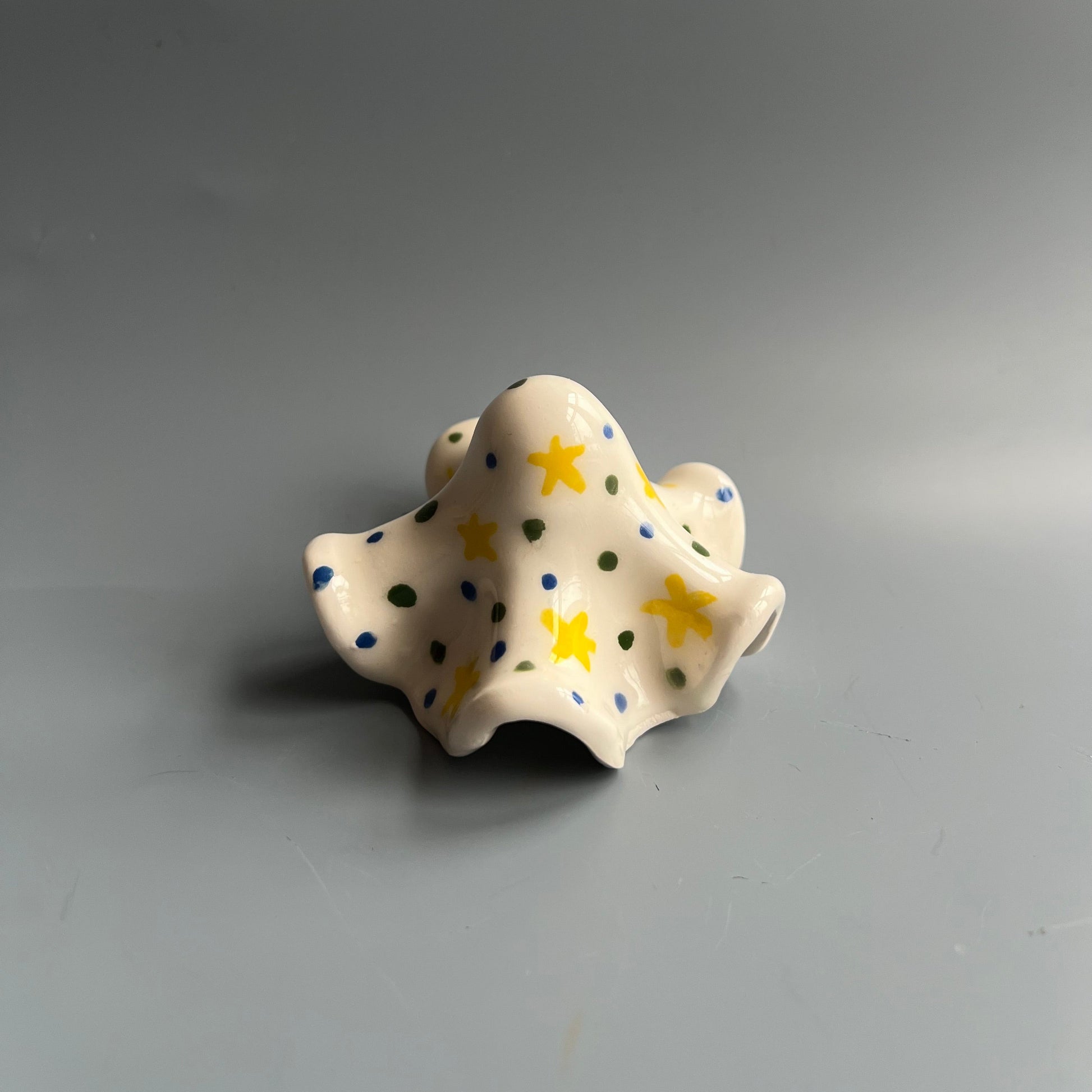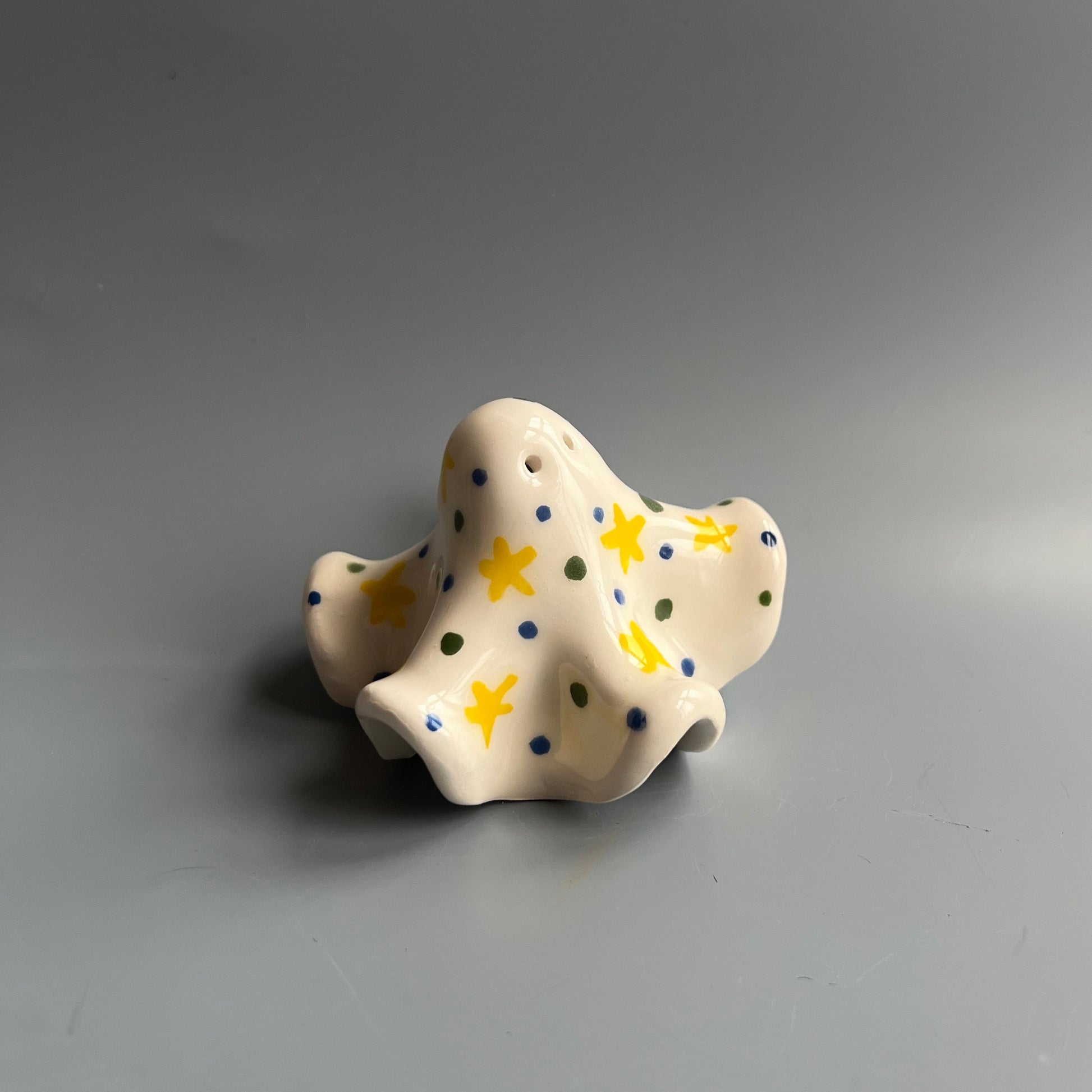 Each ghost is handmade and unique. Our ghosts do much more than haunt your home, these little souls are the perfect incense cone holder. Each ghost comes with a white incense plate, to keep the cone debris contained.