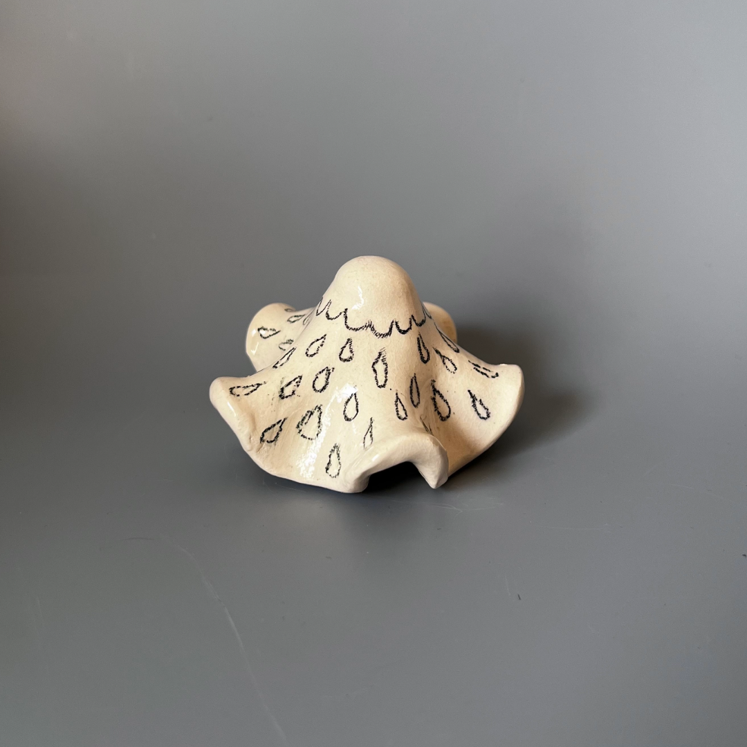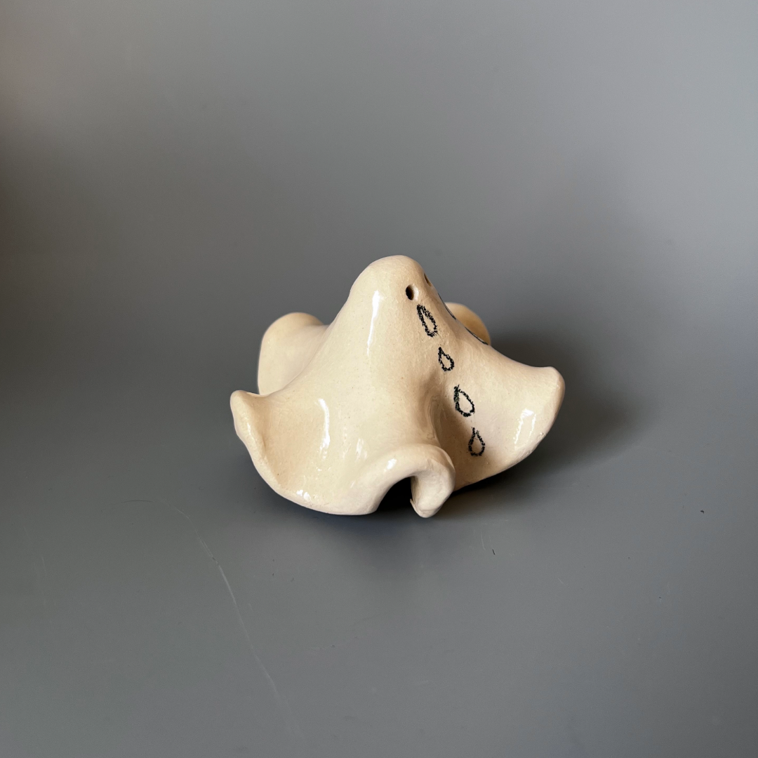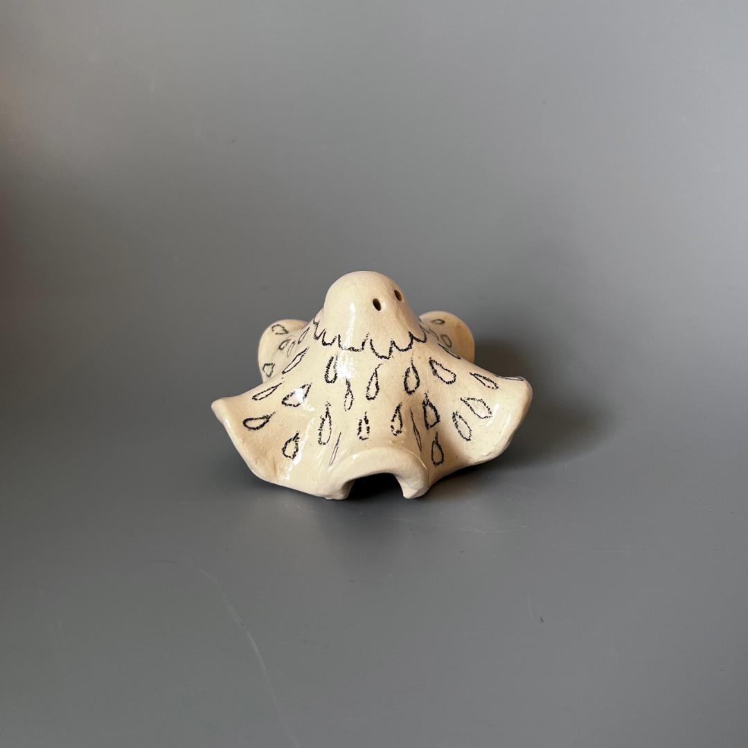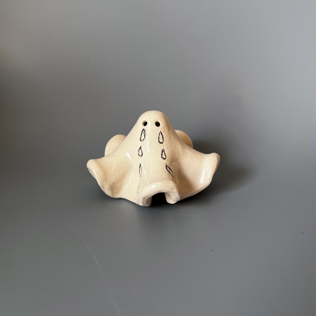 Meet the sketch ghosts! Each ghost is handmade and unique. Our ghosts do much more than haunt your home, these little souls are the perfect incense cone holder. Each ghost comes with a corresponding incense plate, to keep the cone debris contained.