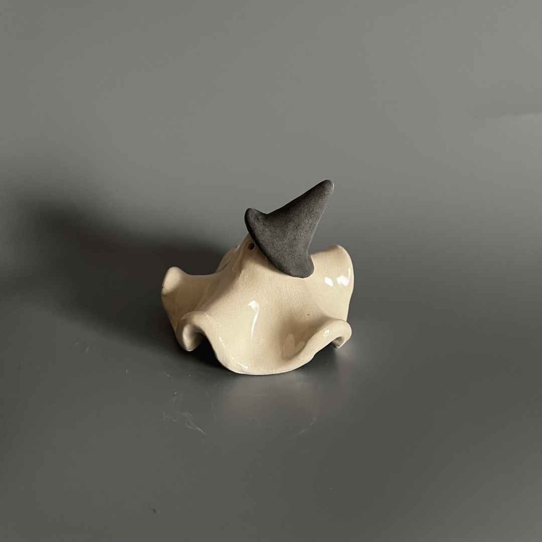 Get in the spooky spirit with our brand new Witch Ghosts! These ceramic incense holders will haunt your home, but this time with a little extra magic! Light up your favourite incense cone and watch as the smoke appears from the witch's eyes. Each ghost is handmade, with it's own personality, so may differ sightly from the picture here!